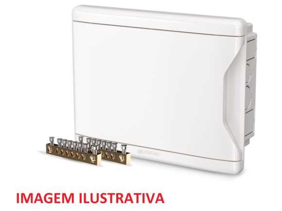 • Fácil instalação: Entrada para bitolas de 20 a 40mm no fundo e nas laterais. Barramento permite fixação nos 4 lados do quadro de distribuição e sistema de trilho por simples encaixe.